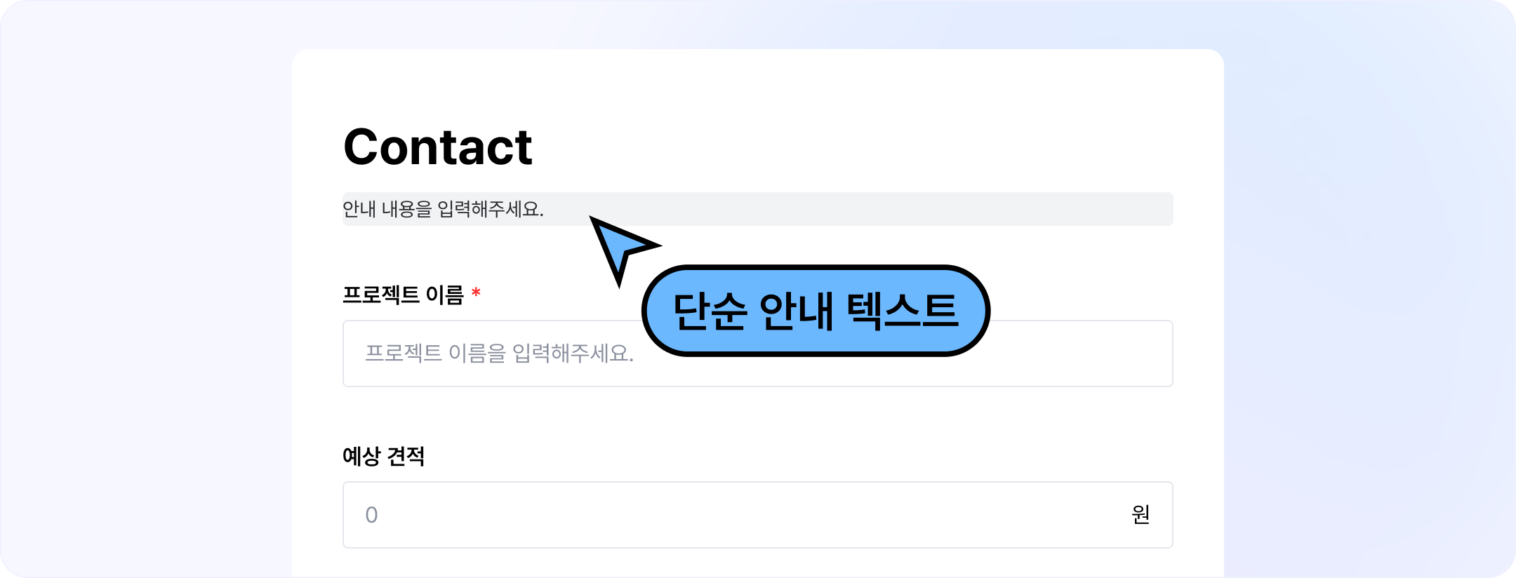폼에서 단순 텍스트로 안내사항을 추가해야할 경우에 입력할 수 있는 안내 필드가 추가됐어요.