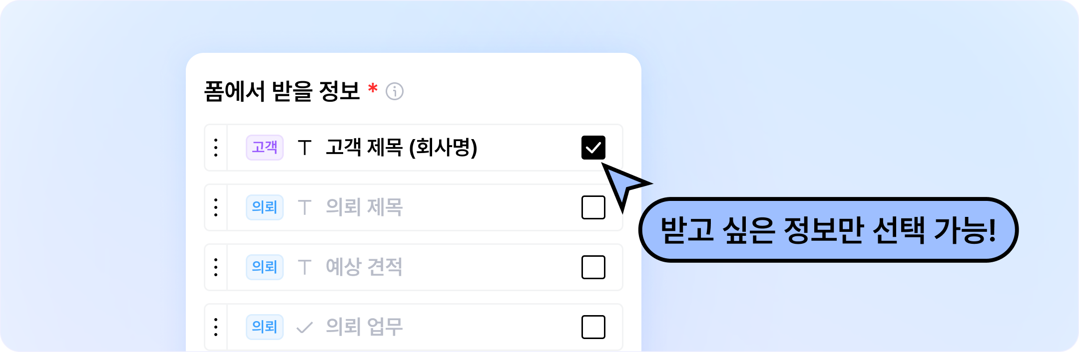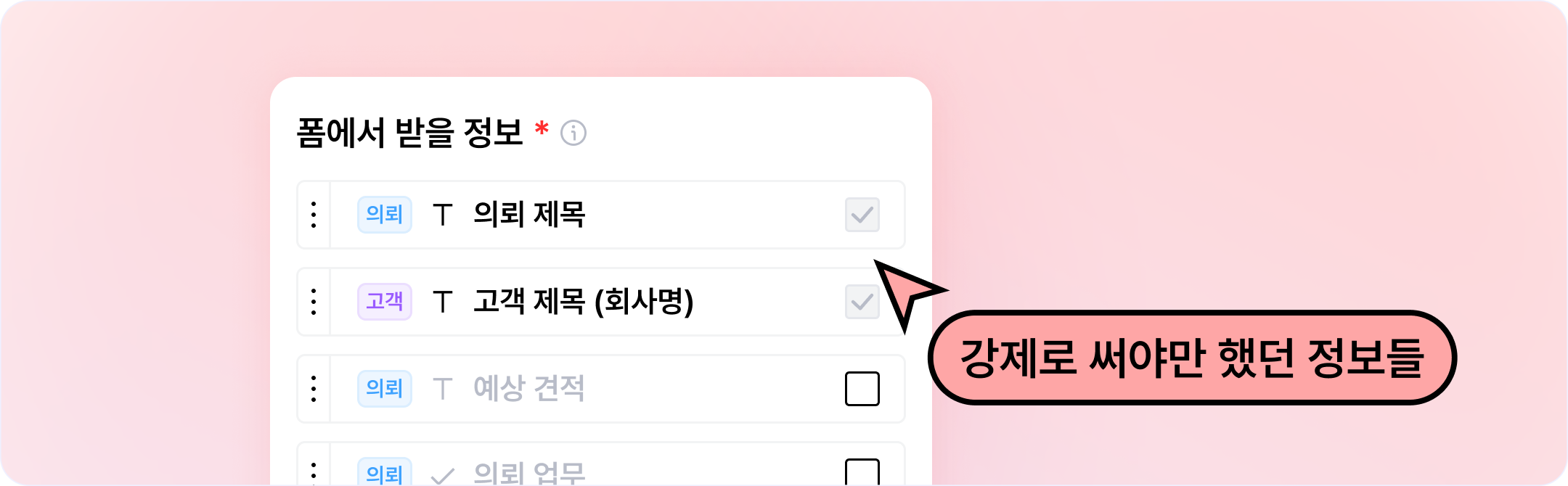 의뢰 제목과 고객 제목(회사명)이 폼에서 강제로 받아야하는 항목이었어요.