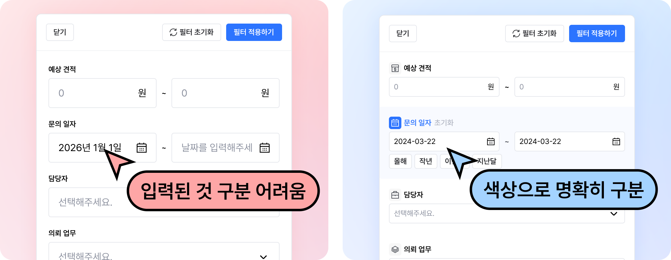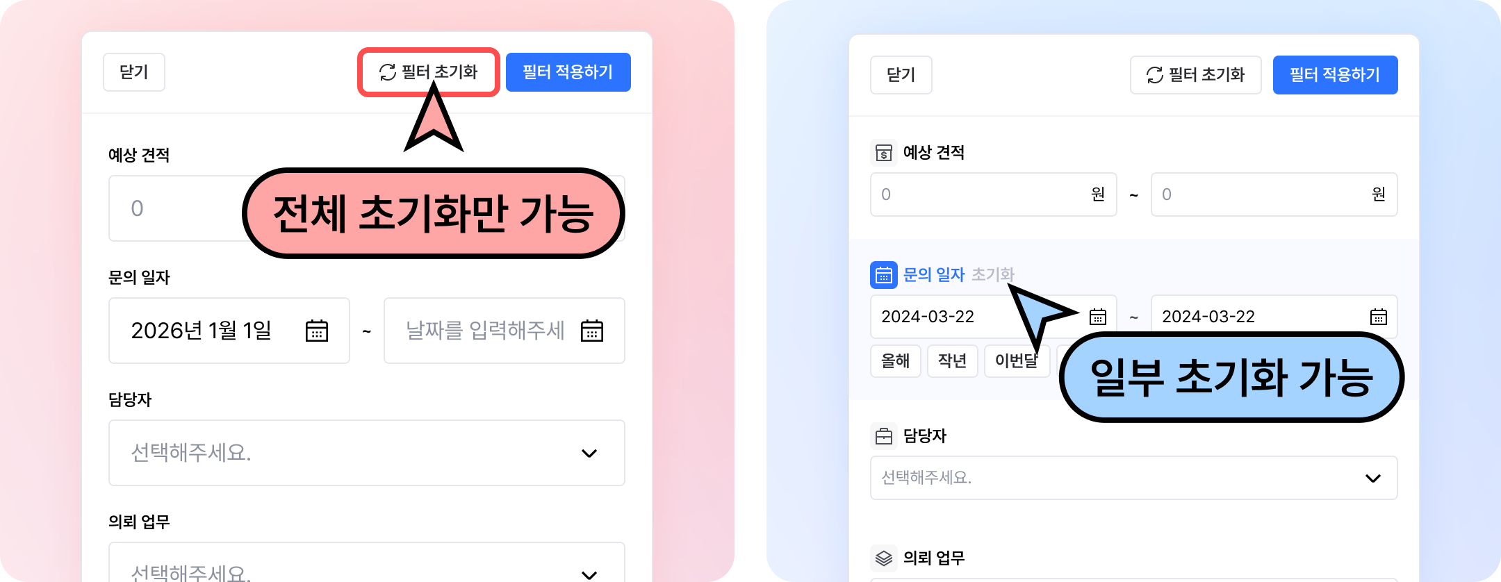 As is 필터가 전체 초기화만 가능해서 일부만 지우고 싶은 경우 번거로움이 있었어요.
