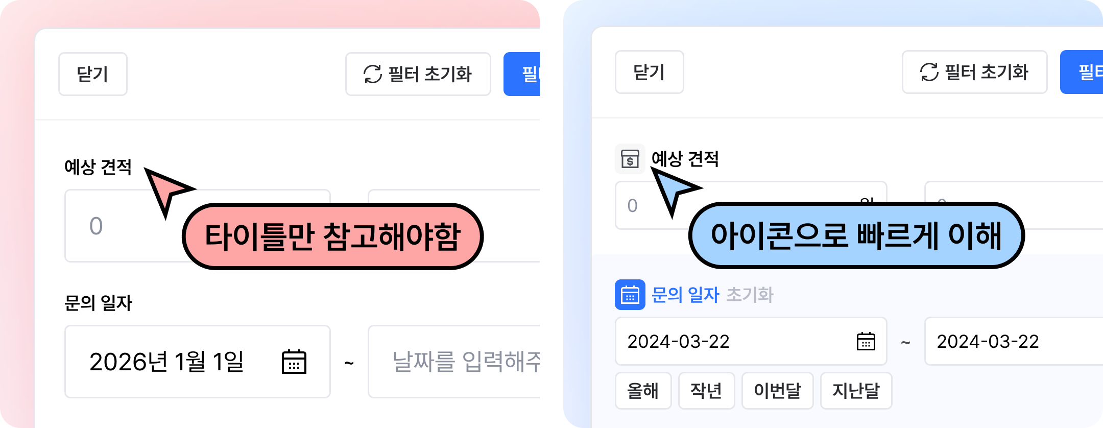 As is 필터에 현재 적용되고 있는 내용이 어떤 것인지 한 눈에 알기 어려웠어요.