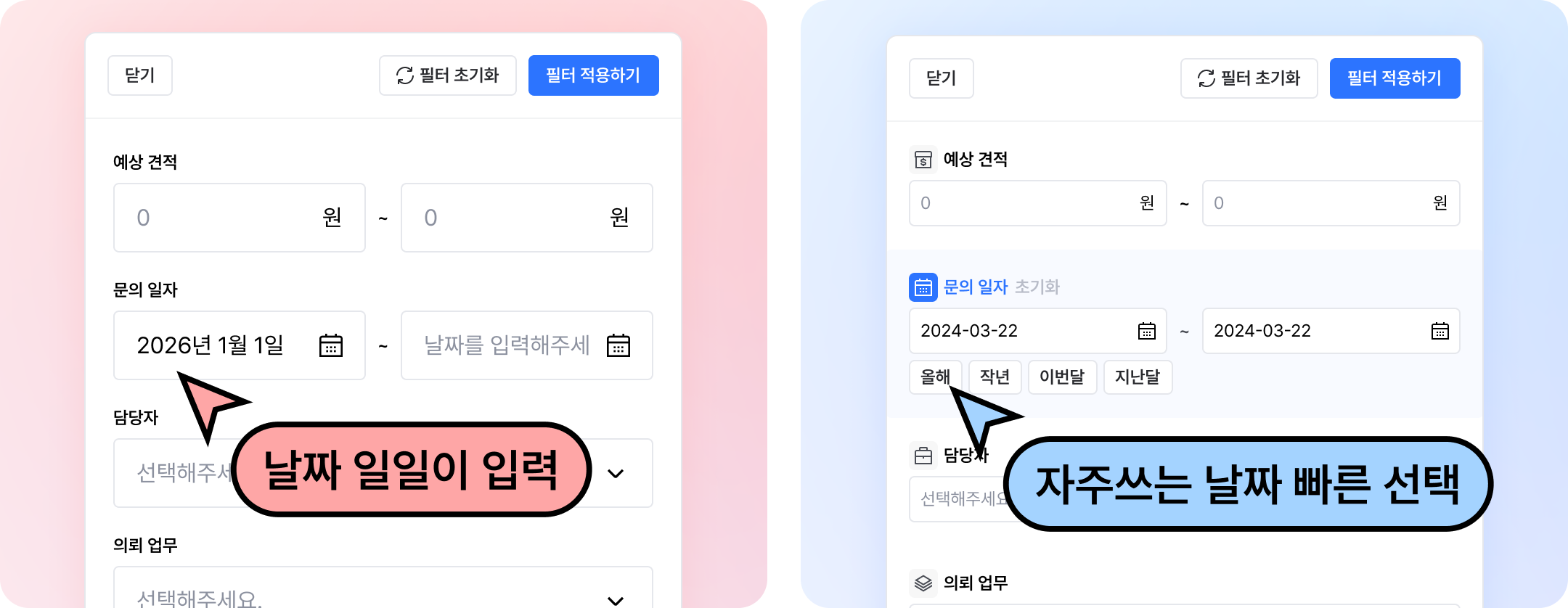 As is 날짜 필터를 입력할 때 일일이 날짜를 선택해서 입력해야했어요.