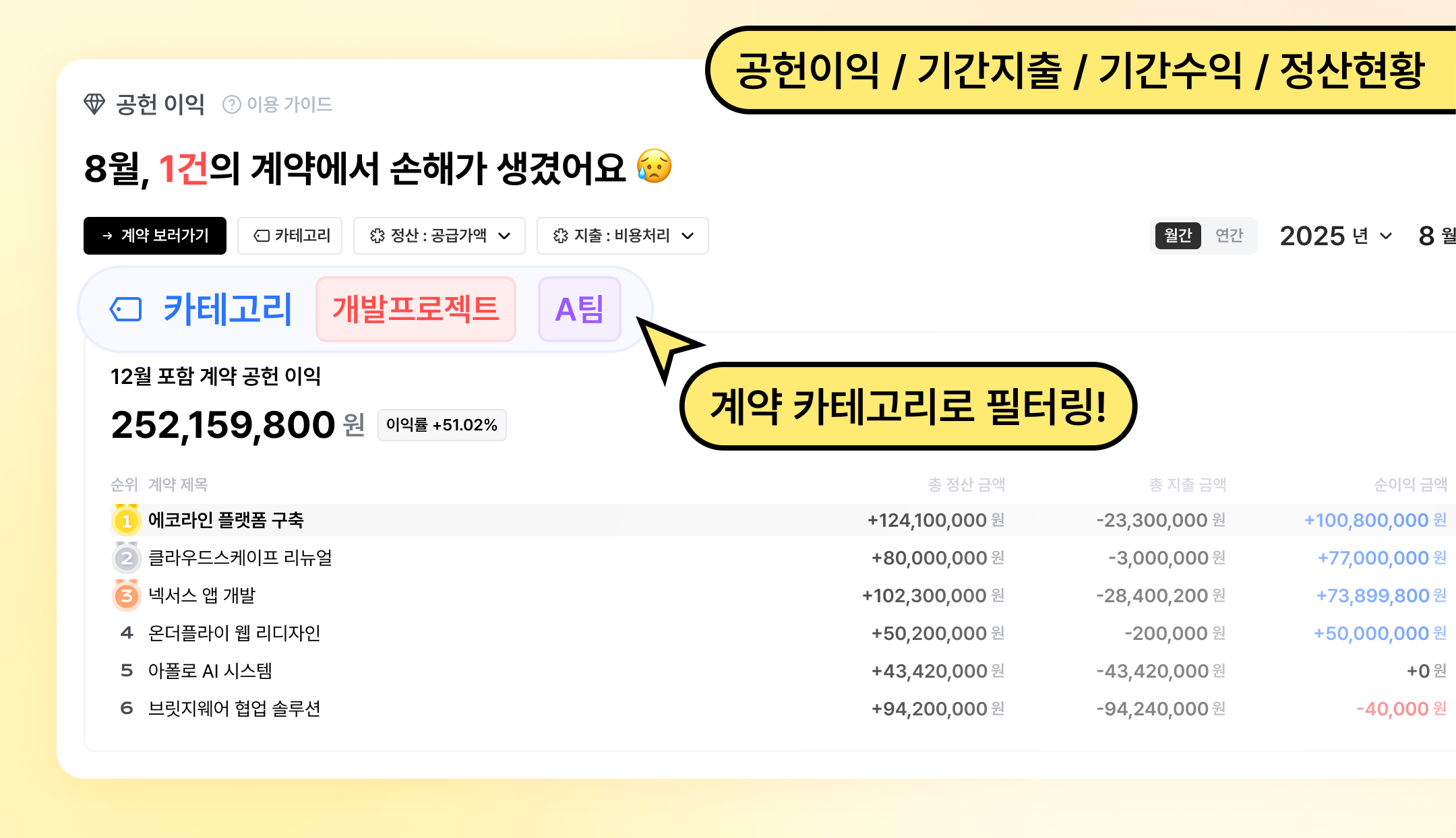 계약 카테고리를 바탕으로 대시보드에서 필터링 기능을 활용할 수 있어요.
