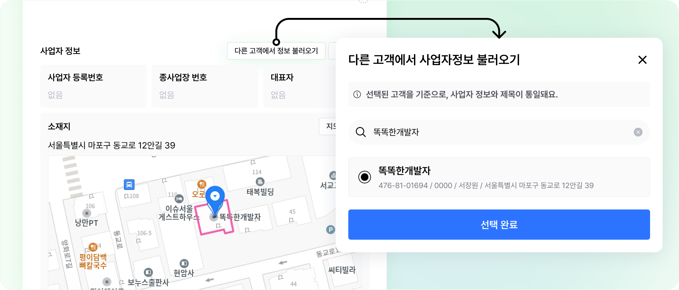 각 담당자별로 고객 데이터를 다르게 관리하는데, 사업자 정보를 매번 입력해야했던 불편함 제거!