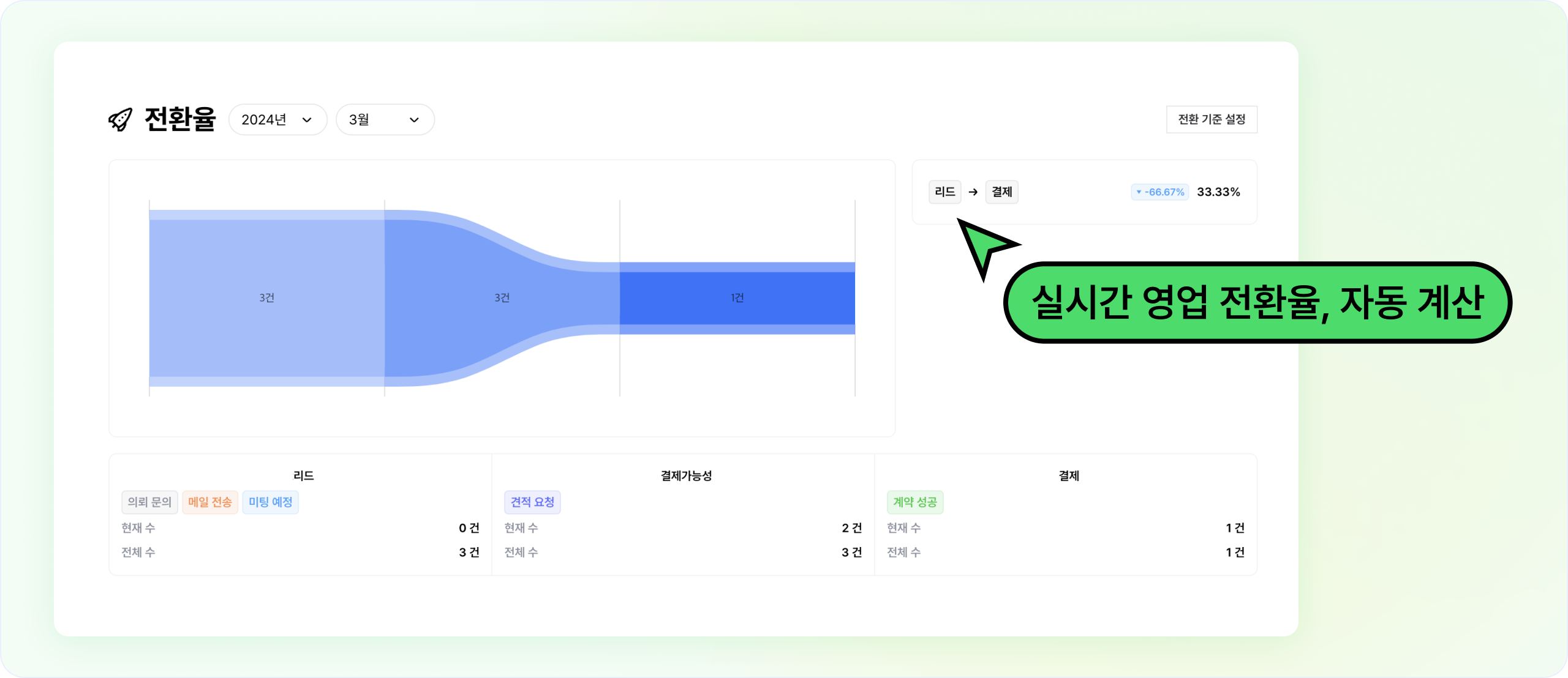 영업 지연율과 전환율 대시보드를 설정하고 실시간으로 확인해보세요.