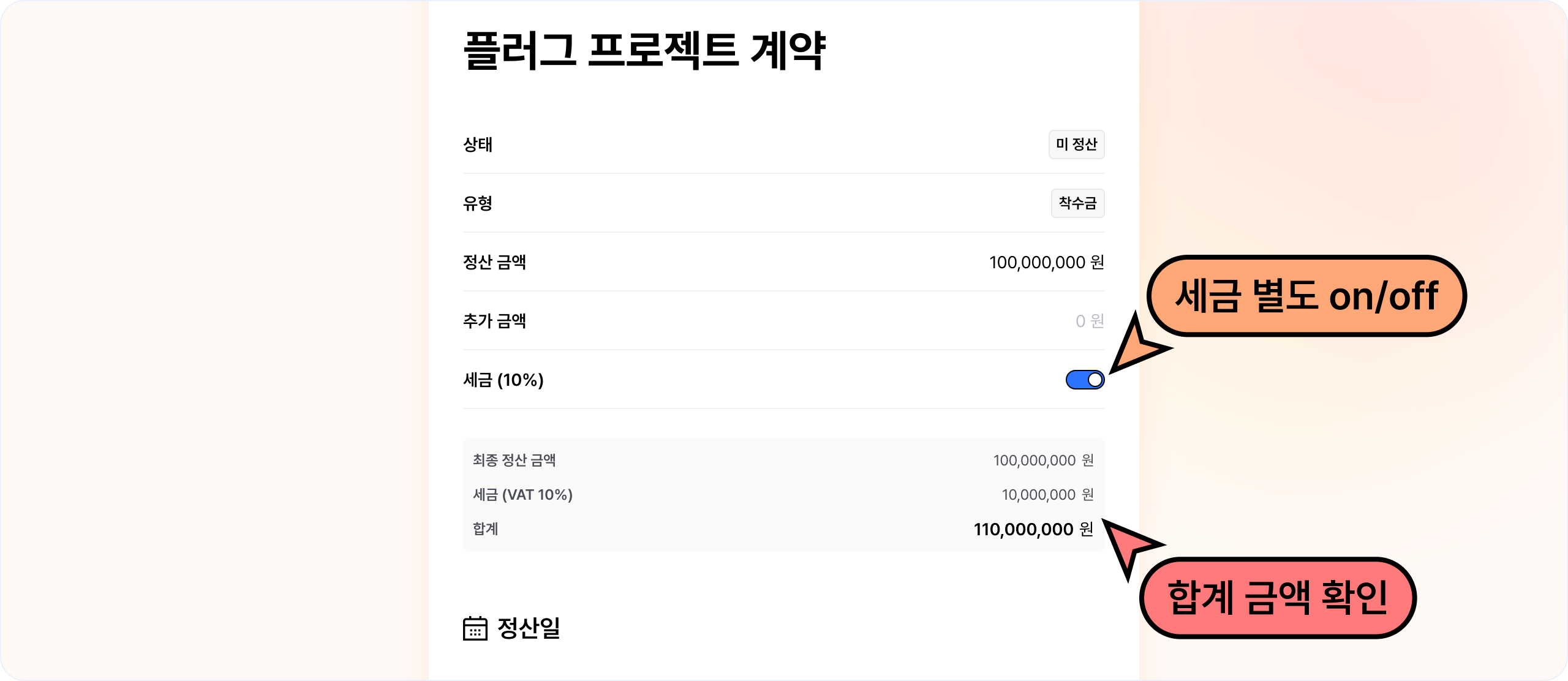 정산과 반환 항목에서 세금 포함한 금액의 정보를 확인할 수 있도록 기능이 추가됐어요.