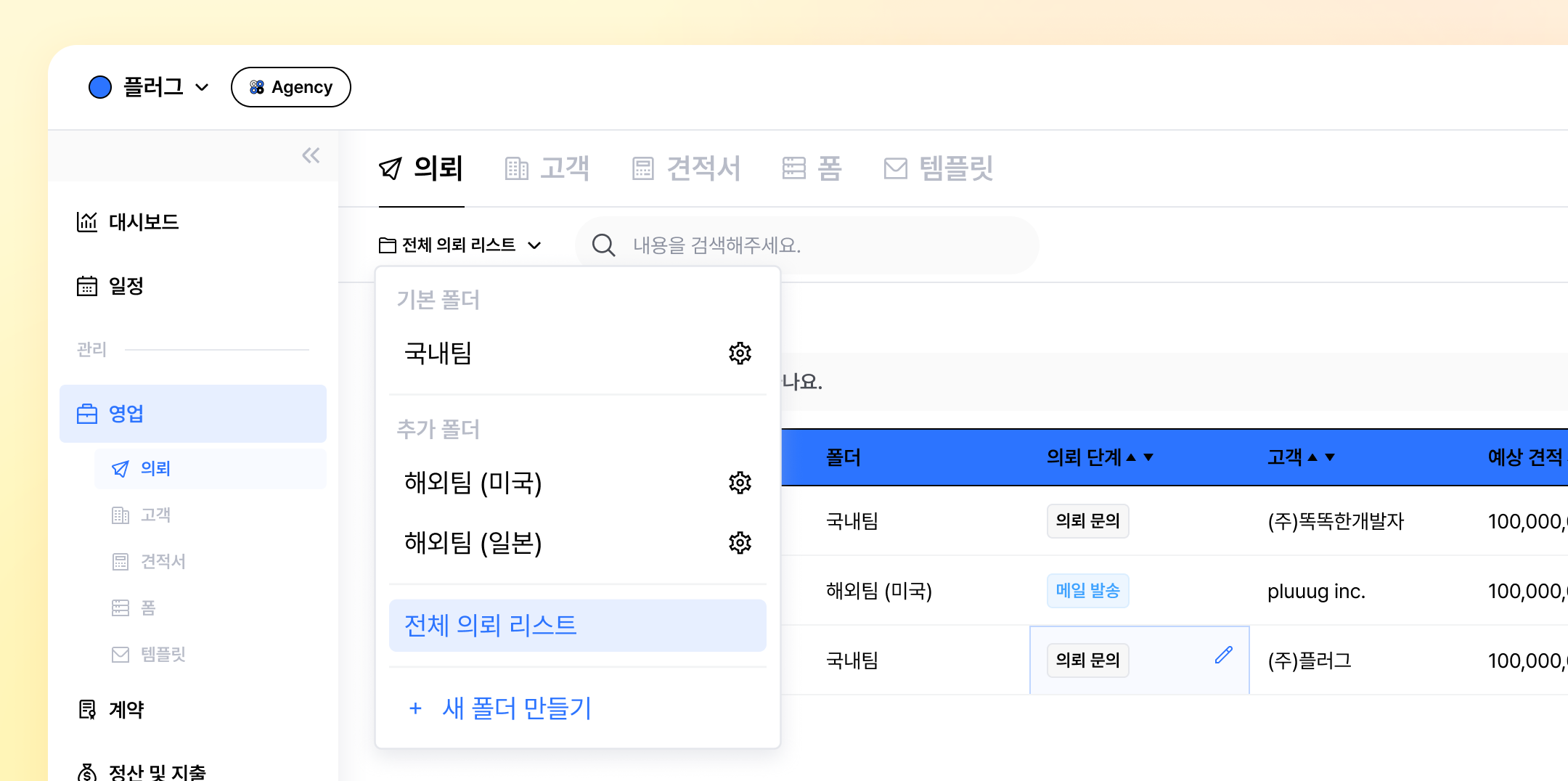 하단 계약 수주 금액 옵션을 ON으로 변경해주세요.