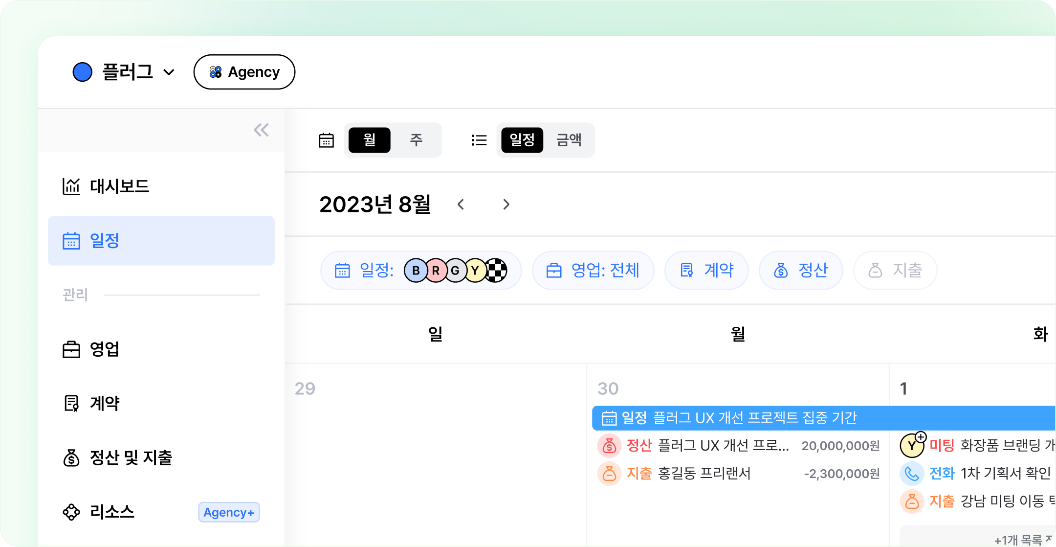 캘린더에서 추가한 일정과 영업 투두의 담당자를 필터링 할 수 있는 기능이 추가됐어요.