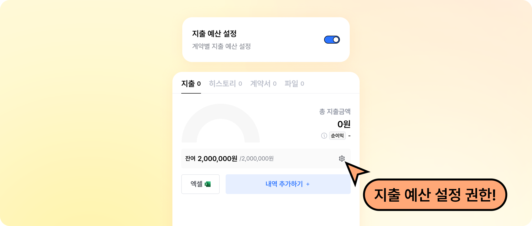 각 계약 내에서 지출 예산을 설정해야할 때, 지출 편집이 가능한 다른 담당자가 자유롭게 예산을 변경하는 일이 일어나지 않도록, 지출 예산 설정 권한이 추가됐어요.