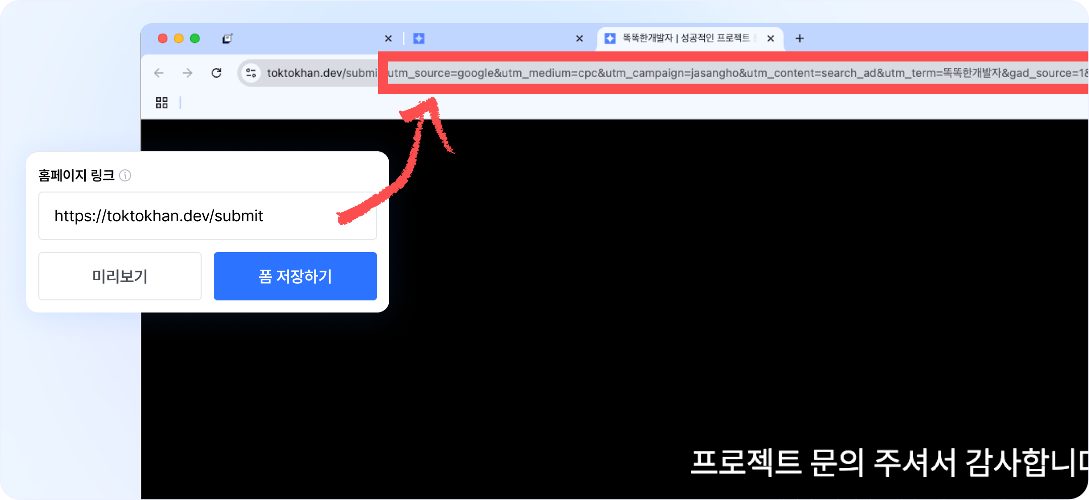 iframe으로 임베드되거나, 유입경로 쿼리파람이 붙어있는 플러그 링크의 폼 제출 시 > 저장된 이동 링크 뒤에, 기존에 고객이 물고 들어온 쿼리파람을 그대로 함께 전송하여 보내줘요.