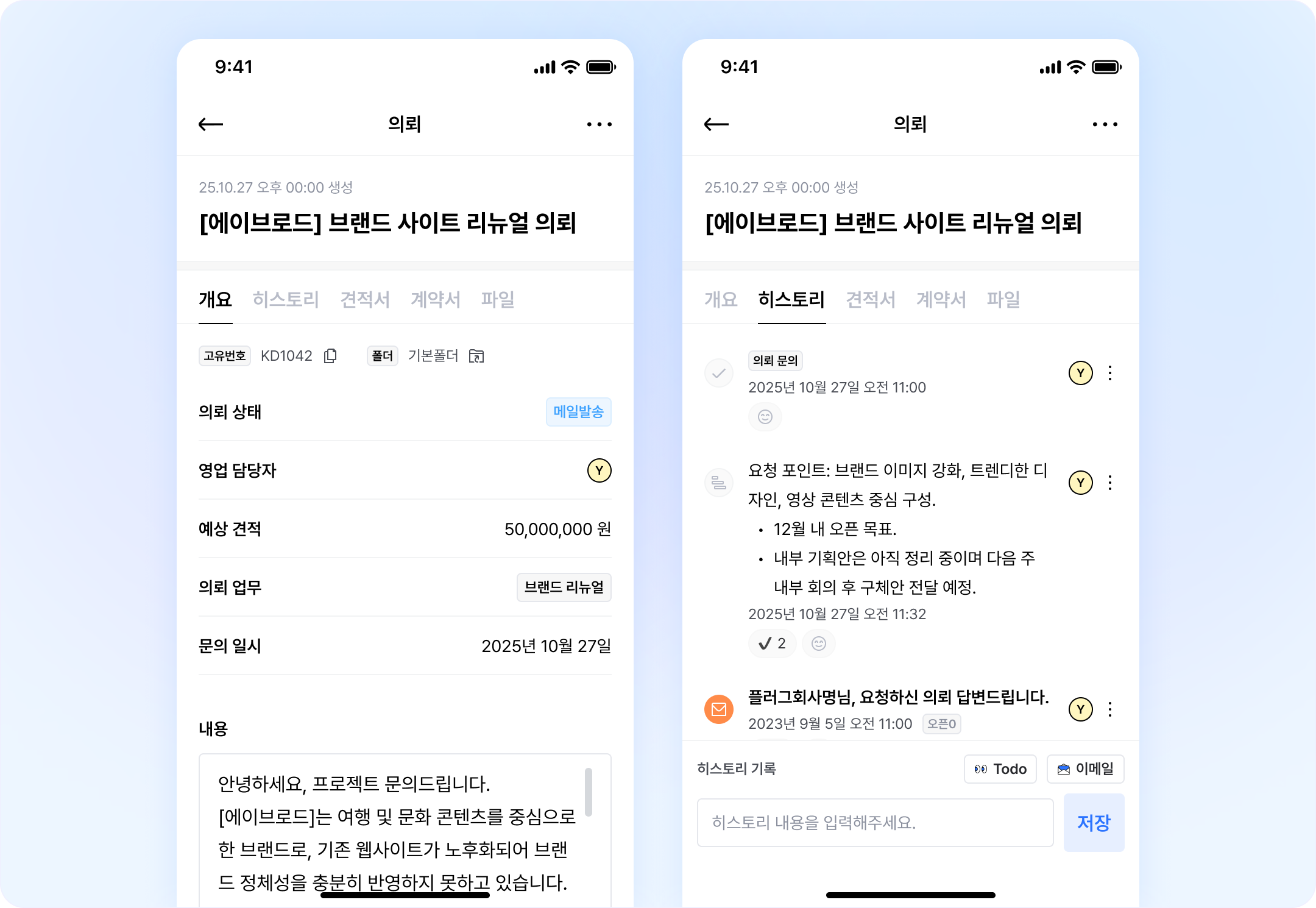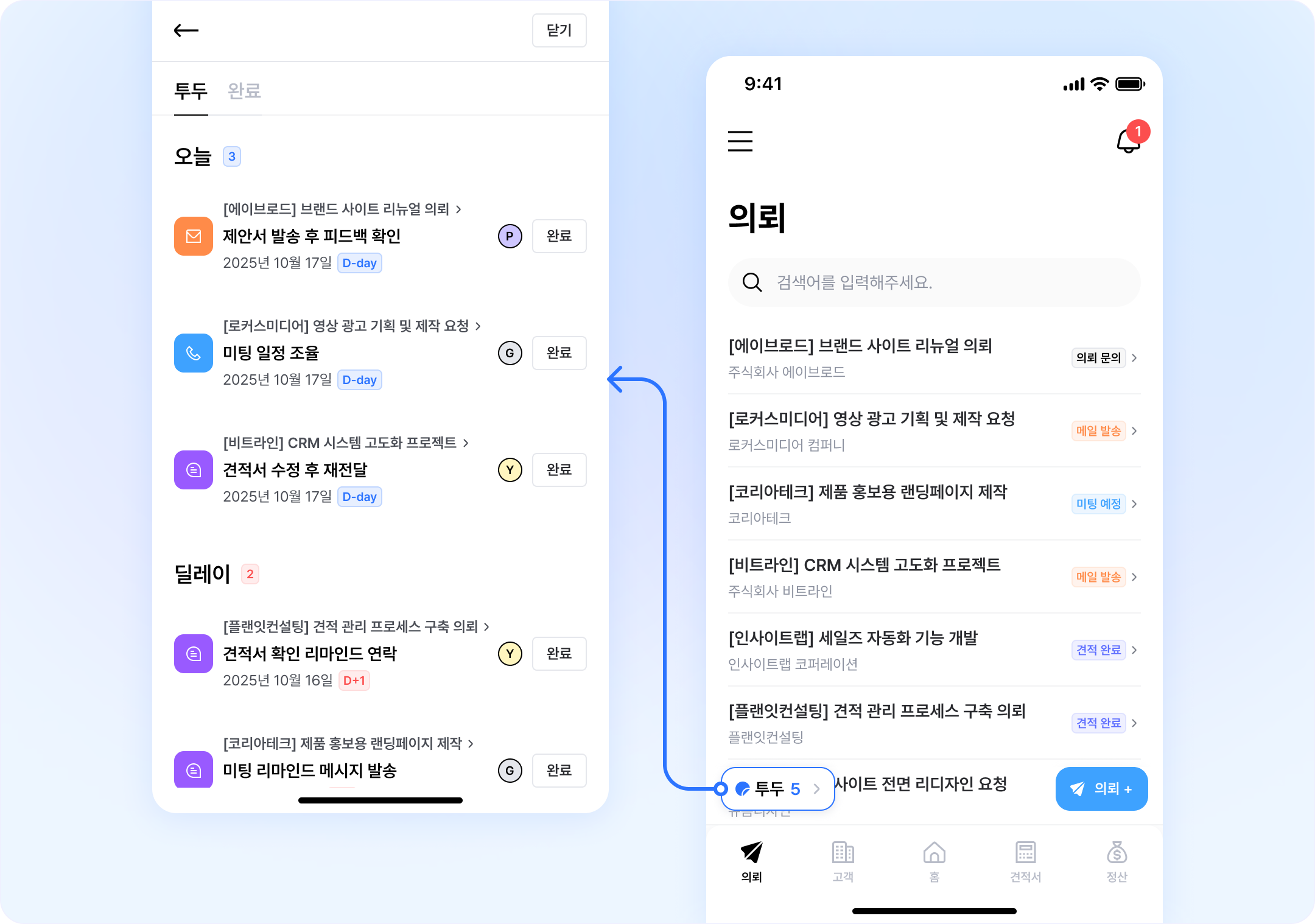 영업 의뢰 건의 투두리스트(할일)를 빠르게 확인하고, 처리할 수 있어요.
