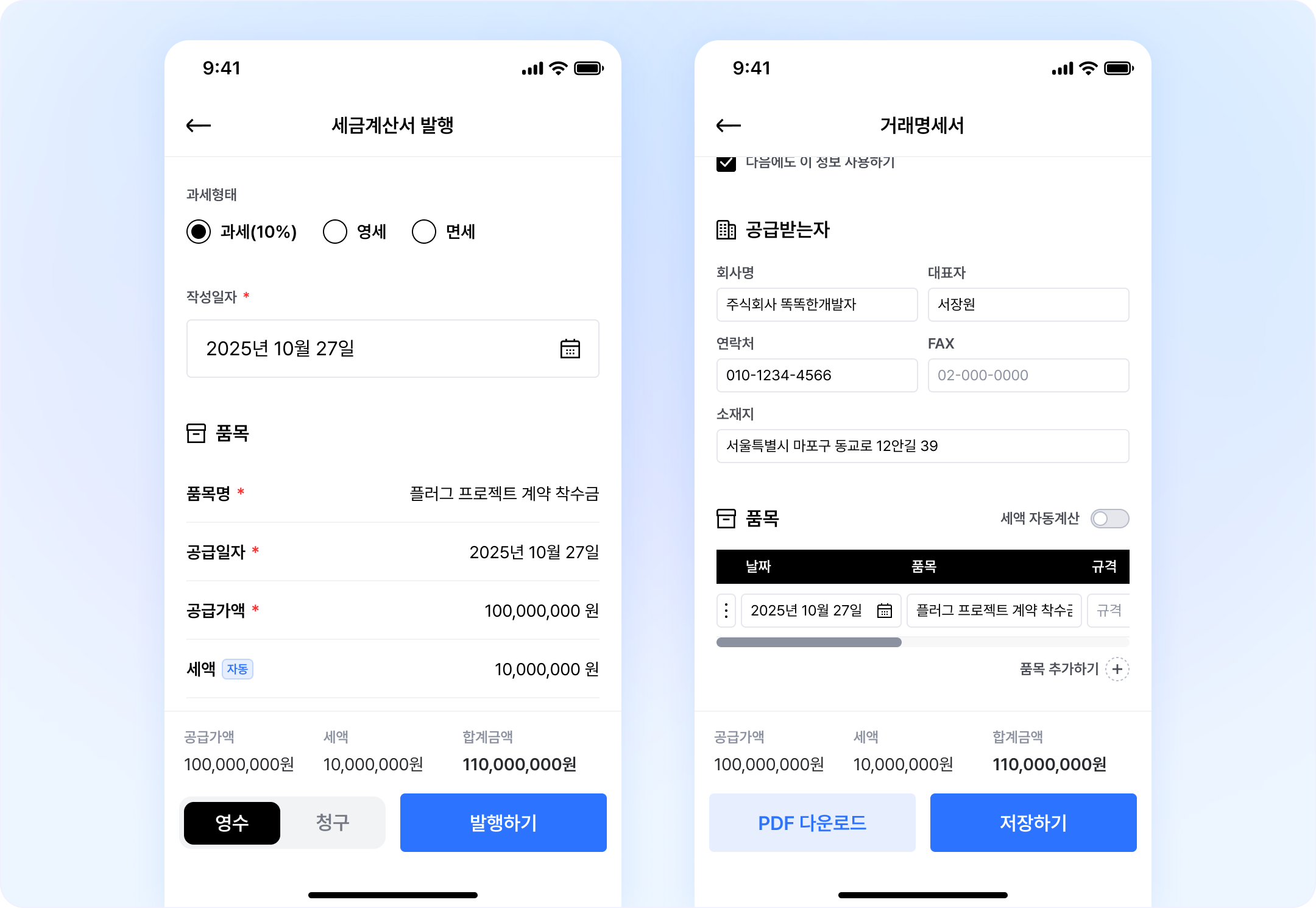 모바일에서 세금계산서 발행