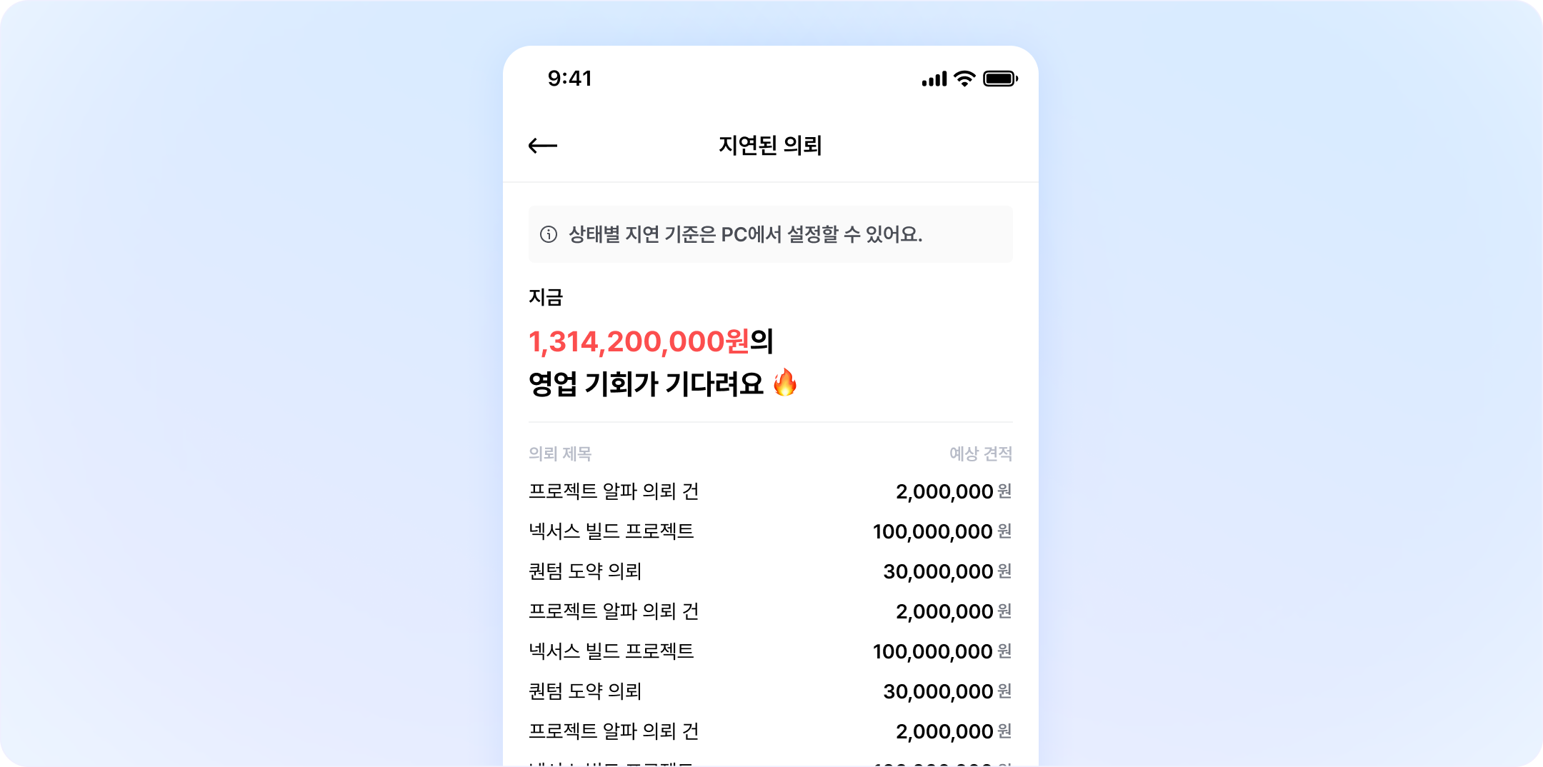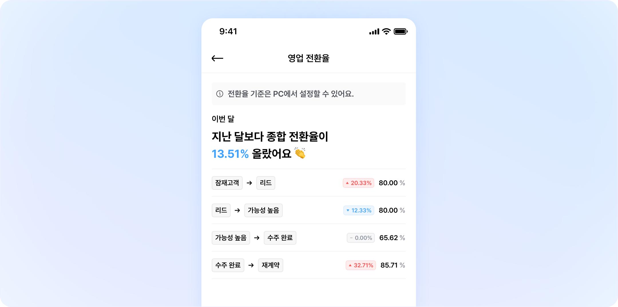 리스트를 한눈에 파악하고, 후속 액션으로 영업 전환율을 극대화할 수 있어요.