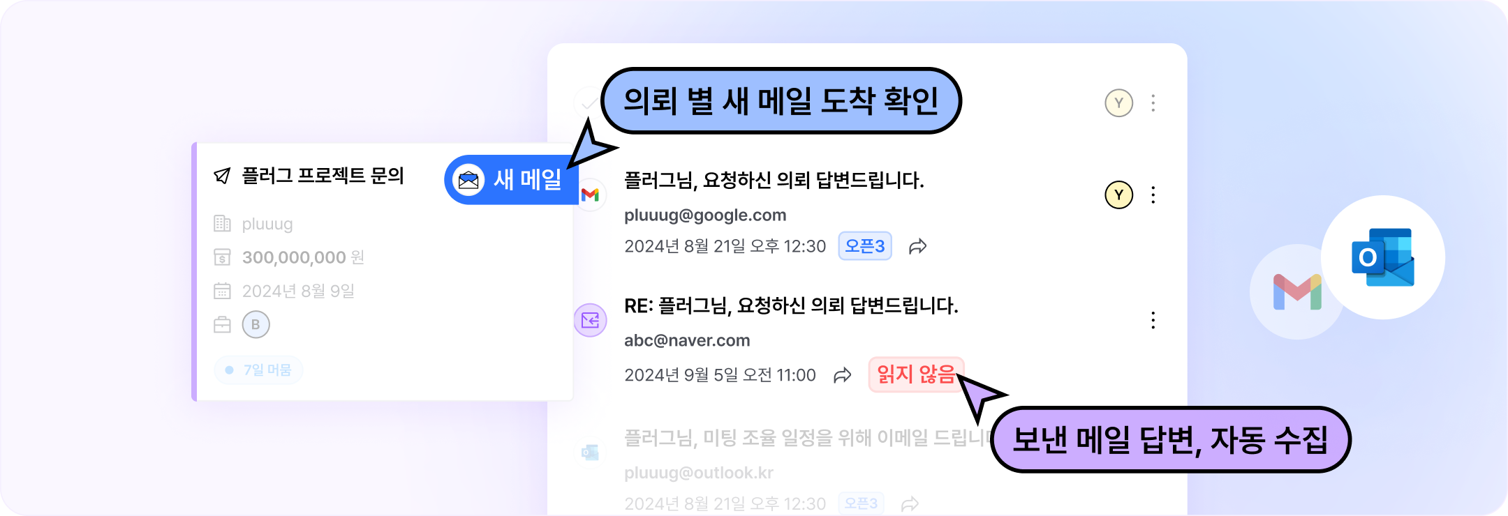 Gmail 연동처럼 아웃룩 이메일 계정을 연동하고, 답변을 수집할 수 있는 기능을 이용할 수 있어요.