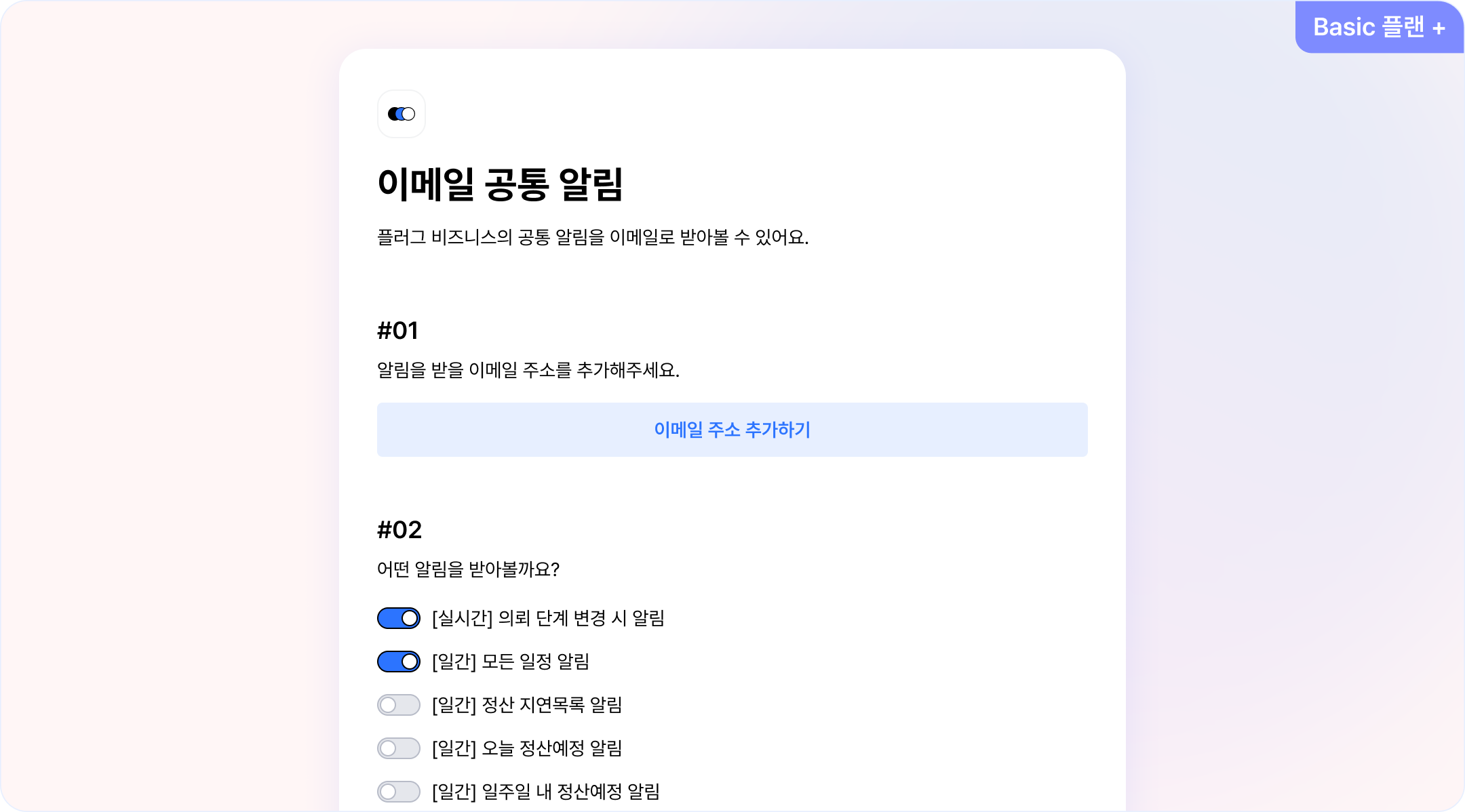 기존 슬랙으로만 받을 수 있었던 비즈니스 내 전체 알림을 이메일로 받아볼 수 있도록 기능이 추가됐어요. * 비즈니스 전체 알림 기능은 Basic 플랜부터 이용할 수 있어요.
