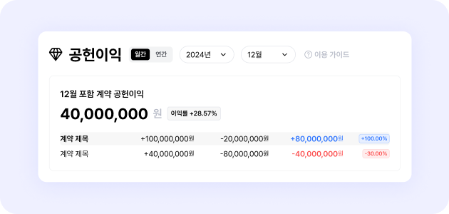 각 월별 / 년도별 공헌이익을 빠르게 확인할 수 있는 대시보드가 추가됐어요.